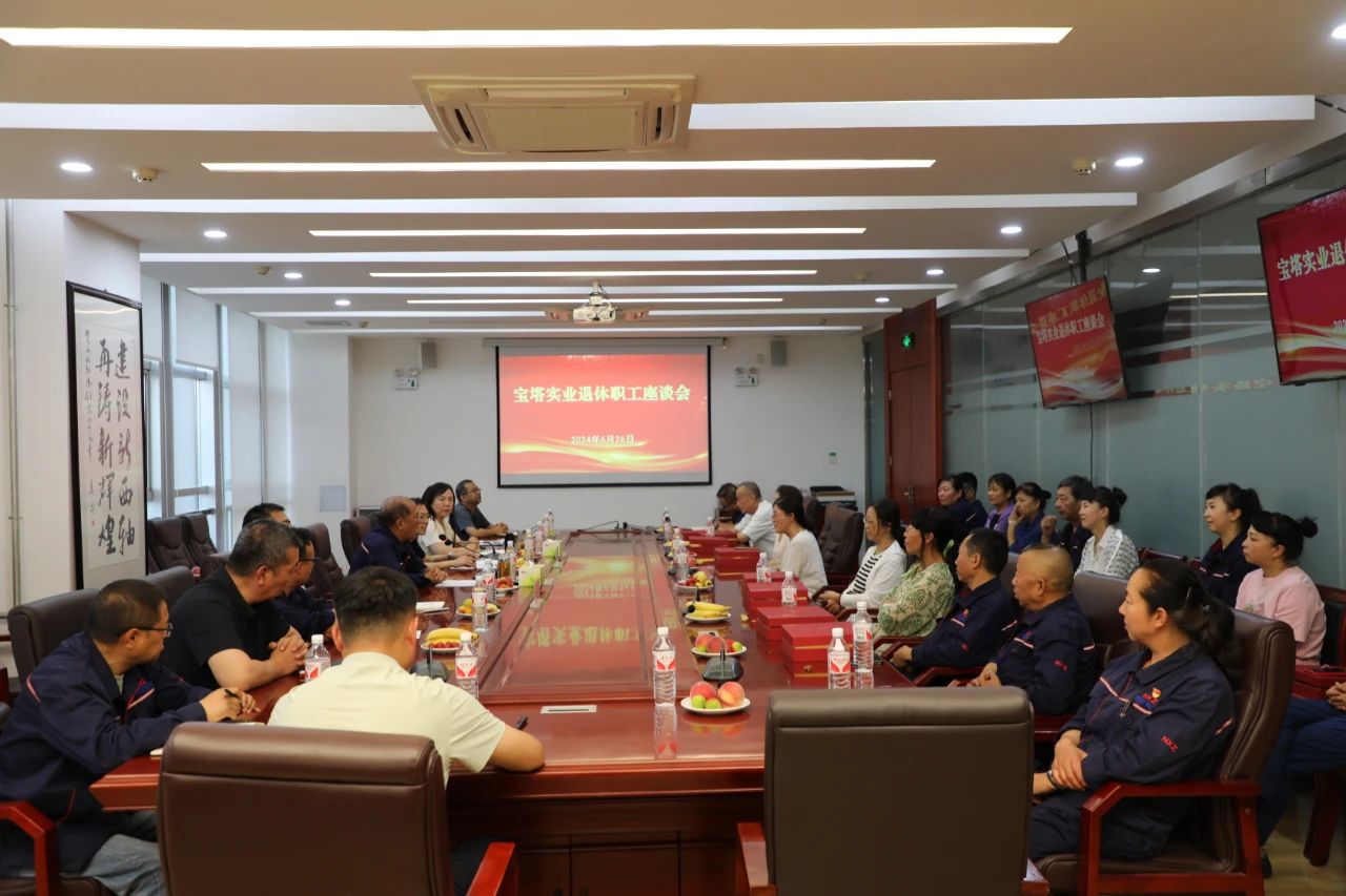 为做好退休职工关怀关爱工作,发挥麻将胡了2的文化凝聚人心的作用,6月26日, 宝塔实业召开退休职工座谈会。公司主要领导,各相关分厂、部门负责人,2021年至2024年已退休和即将退休职工参加会议。