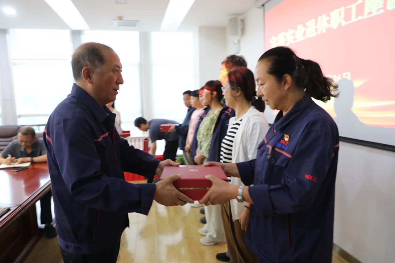 会议在温馨融洽的气氛中召开。公司领导简要介绍了宝塔实业重整三年来的发展变化及未来规划,向退休职工颁发了精心准备的纪念品,给予他们公司大家庭的温暖和心意。三位荣退代表发表感言,深情回顾了多年来在工作中的点点滴滴以及一起奋斗拼搏的情景,诚挚表达了对公司未来发展的美好祝愿。他们的发言情真意切、发自肺腑,无不流露出对公司深沉的爱恋和深厚的情怀,令人感动、使人钦佩。