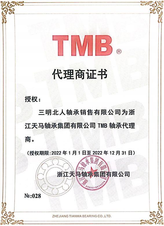 三明北人轴承销售有限公司成立于1995年,前身为“北京人民轴承厂三明销售部”。公司旗下拥有福州轧机轴承有限公司、福州天马轴承有限公司,年销售过亿元。公司现为美国“timken”、德国“fag”、洛轴“lyc”、天马“tmb”、帝达贝“twb”及“长城”润滑脂等国内外一线品牌授权经销商。